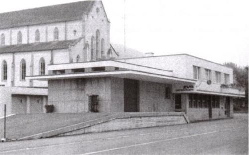 Die neu erstellte Station Unterägeri. Später erhielt dieses Gebäude noch ein Giebeldach und musste 2007 wieder einem neuen Mehrzweckgebäude weichen.