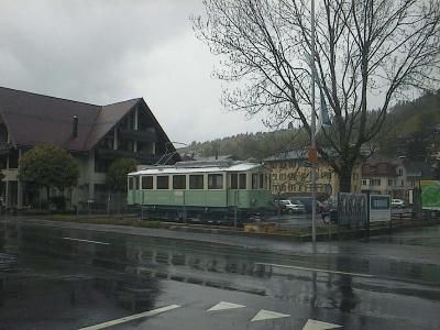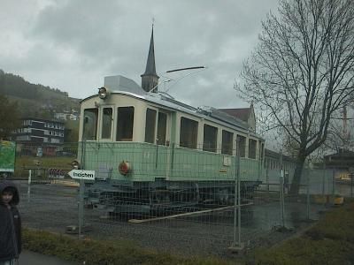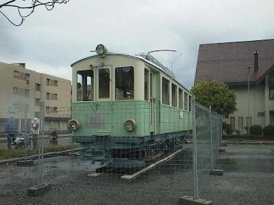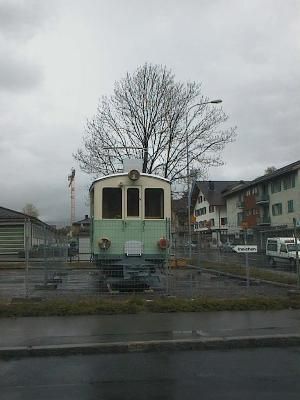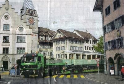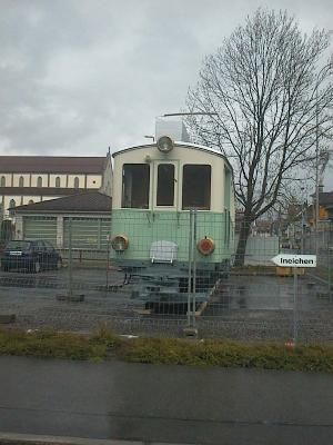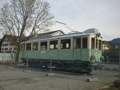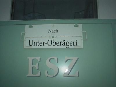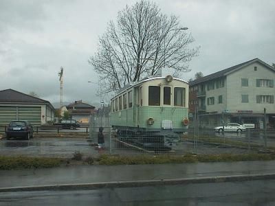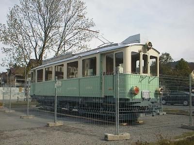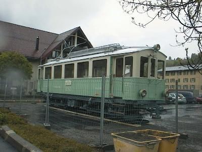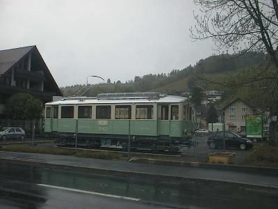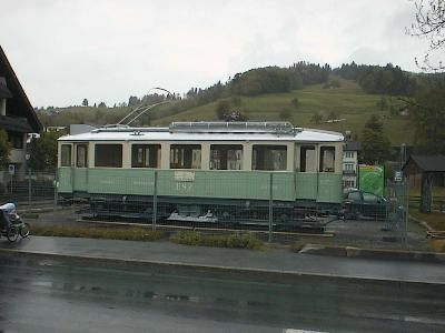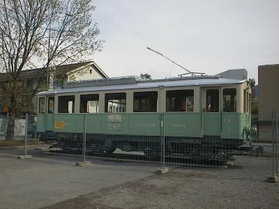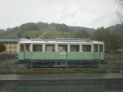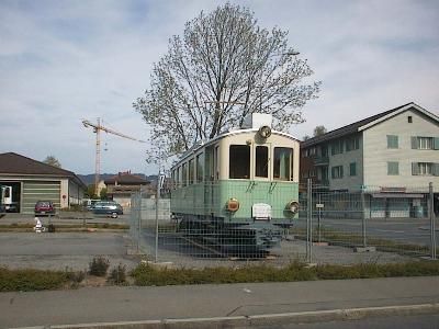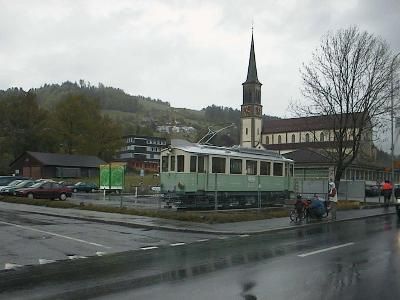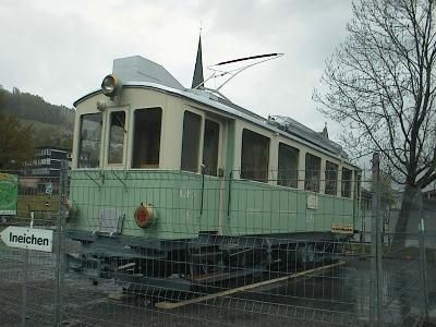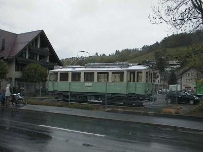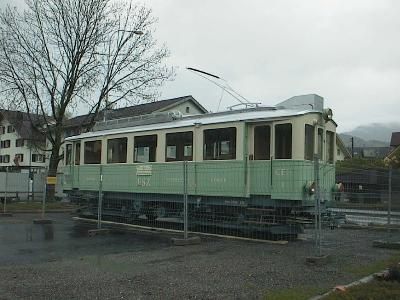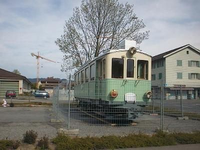 nach Unterägeri. Auf dem Anhänger ist der CFe 4/4 3 zu sehen,